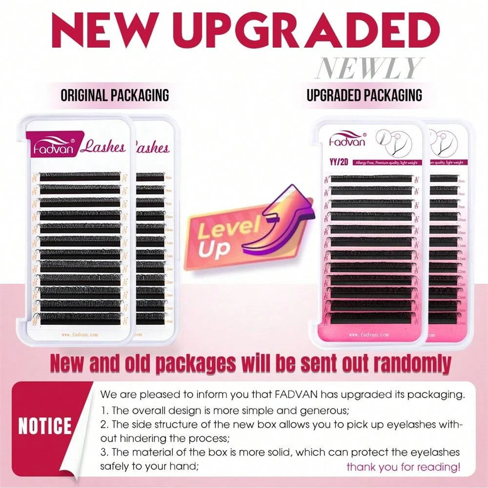 Extensão de Cílios Fadvan — Formato YY Feito à Mão | Curvatura C e D | 12 Fileiras | Uso Profissional